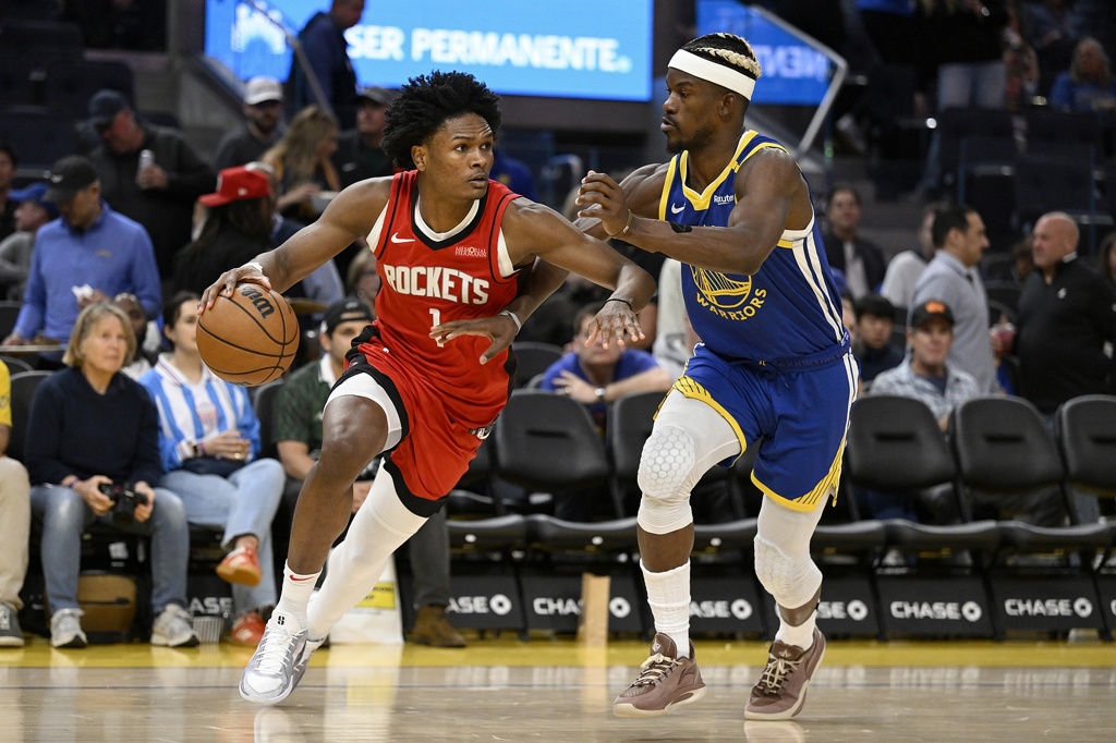 反观火箭进攻篮板22-6勇士,全场比勇士多了11次出手(87-76),但进攻极度便秘:范弗里特三分球13中2、杰伦-格林三分4中0、伊森三分4中0,基本都是大空位,死活投不进;杰伦-格林和阿门合计丢了9个上篮,许多简单球反而没打进——进攻缺乏稳定性,火箭的外线球员和库里/巴特勒差了不止一个档次。