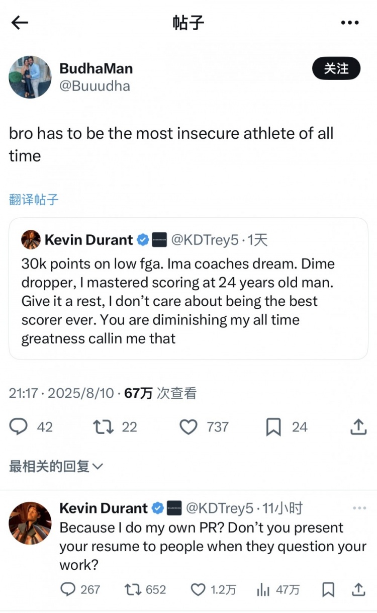 杜兰特:“因为我亲自做公关吗?当别人质疑你的工作时,你难道不向他们展示你的简历吗?”