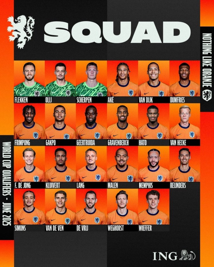 5月26日讯 荷兰国家队公布了6月国际比赛日的球员名单,范迪克、德容、邓弗里斯、赖因德斯、赫拉芬贝赫、德佩在列。荷兰将在6月份世预赛中对阵芬兰和马耳他。