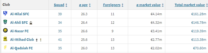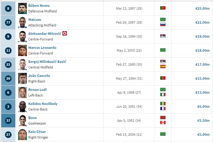 与此同时,这笔转会也将进一步稳固新月沙特联赛身价最高球队的地位:利雅得新月目前以1.61亿欧元居首,第二名是总身价1.46亿欧元的吉达国民。