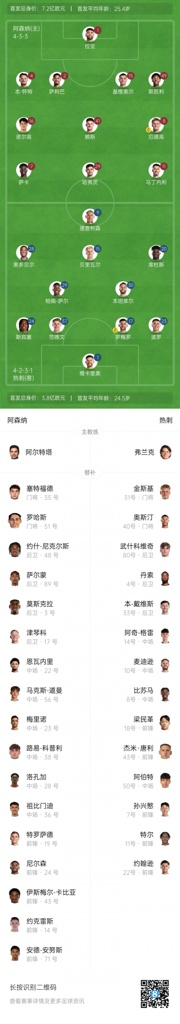 阿森纳替补:35-塞特福德、51-洛哈斯、3-莫斯克拉、14-约克雷斯、17-津琴科、19-特罗萨德、22-恩瓦内里、23-梅里诺、24-尼尔森、28-洛孔加、36-祖比门迪、38-科普利、43-卡比亚、48-尼克尔斯、56-道曼、71-安努斯、89-萨尔蒙